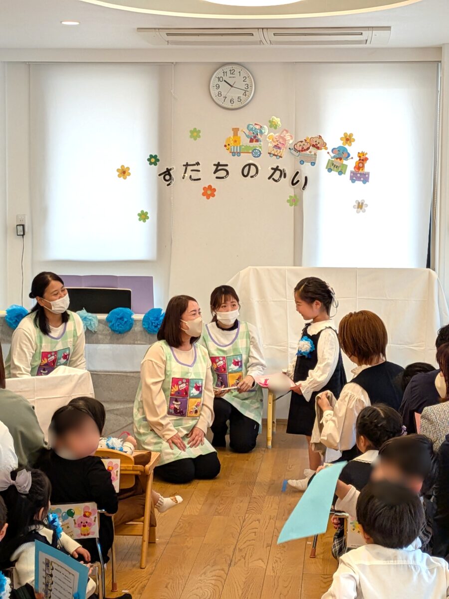 ひいらぎ保育園から巣立つ園児の式が行われました。一人ひとりに証書が授与され、保護者からは先生方への感謝の言葉が伝えられました。
